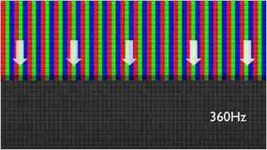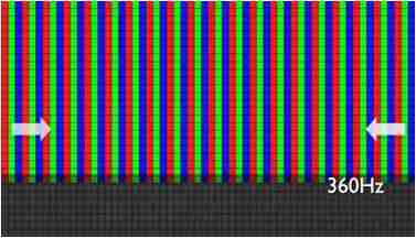 传统液晶驱动是从左到右单向进行,,,在画面更新速度愈来越愈快的情况下,,,,位于驱动线路末端的右下角区域,,,,画素的闸极来不及在短时间内获得足够电压,,无法显示出正确的颜色资讯。。。
