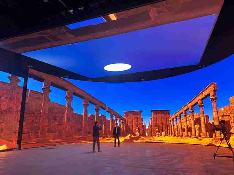 创利空间以超过 2200 块 LED 面板组合成宽 15 公尺,,高 6 公尺,,270 度带天幕的环形屏幕墙,,,占地 470 坪,,,为全台规模最大的混合实境智能摄影棚。。其高色彩覆盖率、、、6000Hz 的超高刷新率,,,,让画面鲜丽丰富,,维持细腻度和锐度;加上无限尺寸、、、无缝拼接的特性,,打造出身历其境的视觉震撼和 3D 拟真效果,,,建构出堪比星际大战《曼达洛人》的特效场景。。此类 LED 巨型实时混合实境智能摄影棚,,未来可望在制片产业中扮演核心战略装置。。。
